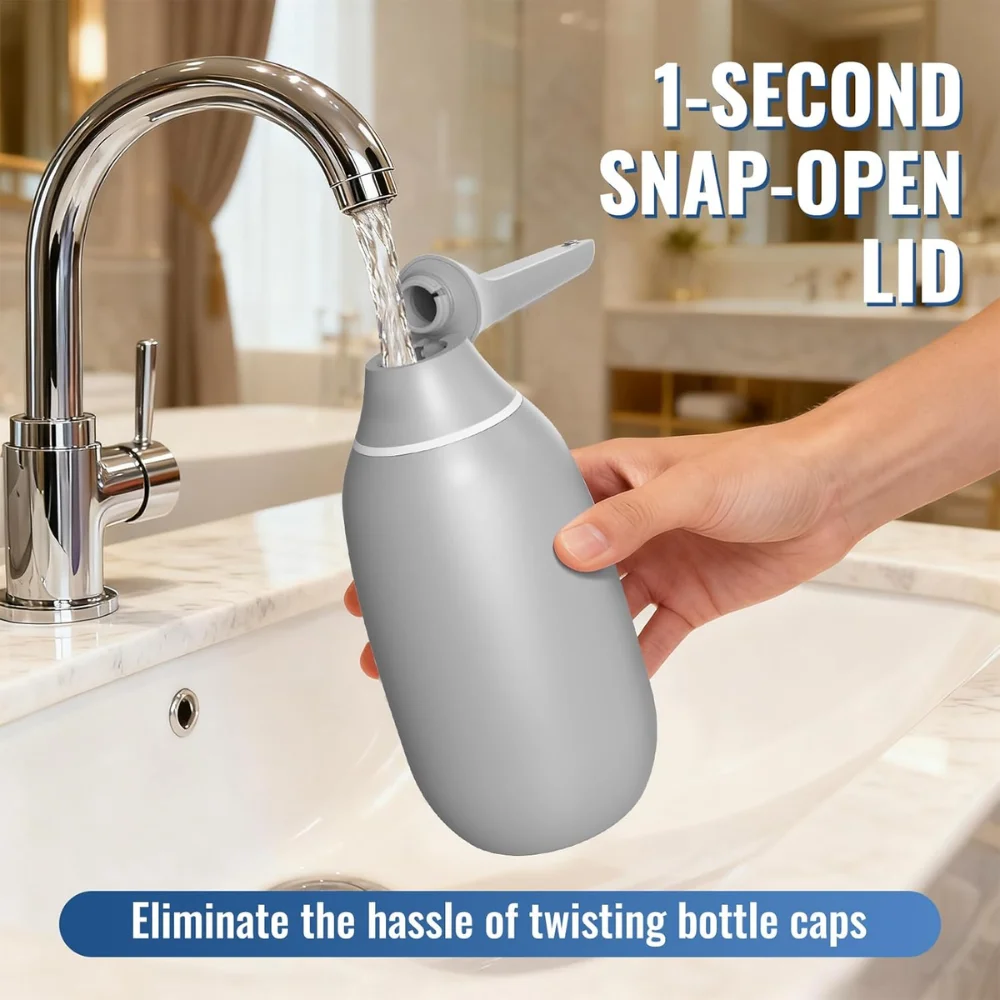 Refilling the bottle is quick and easy with a snap-open lid that flips open with one hand. This design avoids the hassle of twisting caps, allowing users to refill under a tap or sink easily.